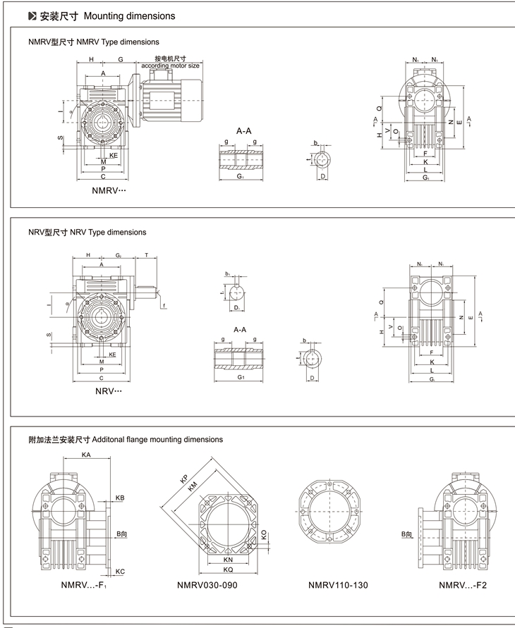 4、與RV、NMRV、NRV蝸輪蝸桿減速機配套的電機必須合適在低溫環境中工作;